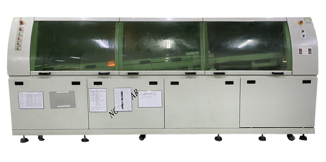 波峰焊机是指将熔化的软钎焊料(铅锡合金),经电动泵或电磁泵喷流成设计要求的焊料波峰,亦可通过向焊料池注入氮气来形成,使预先装有元器件的印制板通过焊料波峰,实现元器件焊端或引脚与印制板焊盘之间机械与电气连接的软钎焊。